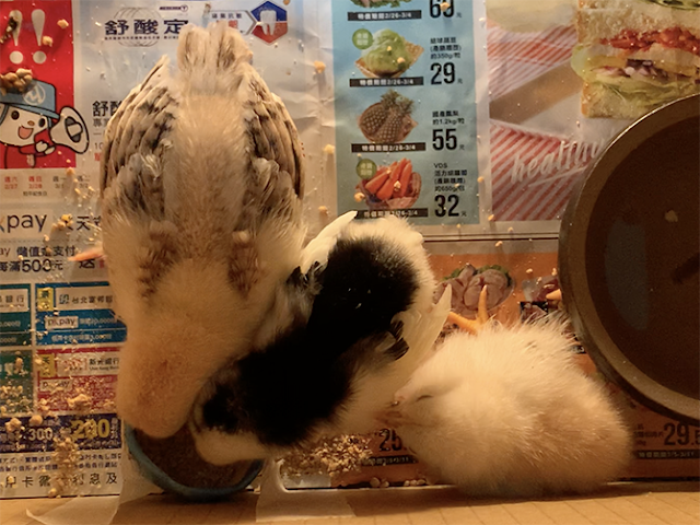 他就像個頑皮小男孩,吃飯時總是霸佔著盤子,將飼料啄得滿地,另外兩隻雞只能眼巴巴看著美食變成糟糠,可憐極了,這隻雞竟還得意洋洋噘起屁股,完全沒把規矩放在眼哩,看來已經徹底看穿Gola的上限只是個剷屎官,就這樣,不到幾天,江湖規矩就這麼決定了,瑜珈 > 小花 > 弱雞 > Gola,畫面有點像是所有人排成一列,前頭那隻雄赳赳氣昂昂,最後那隻正低頭在撿大便。(待續)